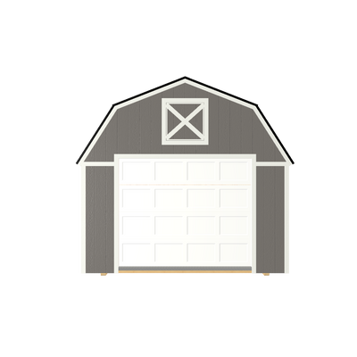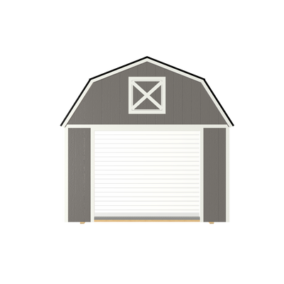 This 12x20 Lofted Barn Garage is ideal for various uses, from storing lawn and garden equipment to serving as a workshop. Its robust construction and ample storage space make it a versatile addition to any backyard.