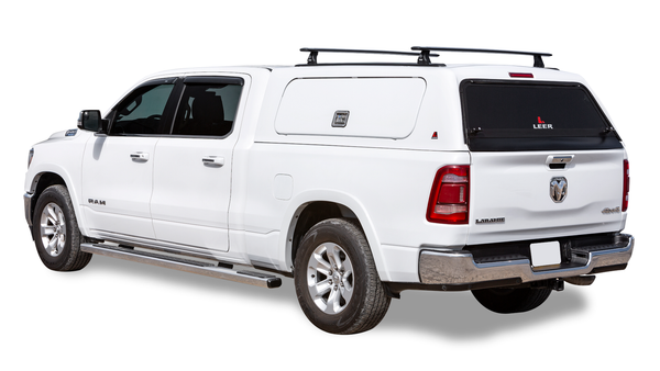 The 100SCC is a premium commercial cap that comes standard with smooth sides and a solid panel rear door with stainless steel drop T-handles. You can add flush side access doors that provide an integrated profile and the perfect canvas to overlay vinyl or painted graphics for marketing purposes, and keyless entry for convenience.