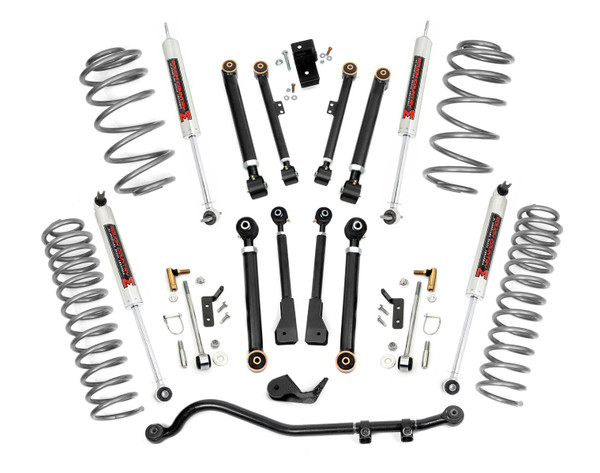 Create A New AccountVenture far beyond the limits of a stock Wrangler with Rough Countrys all-inclusive 2.5-inch X-Series Lift for Jeep TJ. Level the front of your vehicle with the rear while gaining enough increased ground clearance to run up to 33-inch tires. Rough Countrys X-Series line represents the best-in-class equipment for off-road action, including fully rebuildable X-Flex Adjustable Control Arms, durable rubber bushings, Sway-bar quick disconnects, and your choice of our N3 shocks for daily drivers or our oversized Performance 2.2s for optimum off-road performance. For those who are serious about flexing, crawling, and pushing your Jeep to the limits, this kit features an upgraded Forged Adjustable Track Bar. Made of forged steel, this 16lb Track Bar boasts a beefy construction that will dwarf stock equipment. Easy to install and fully adjustable on the vehicle.