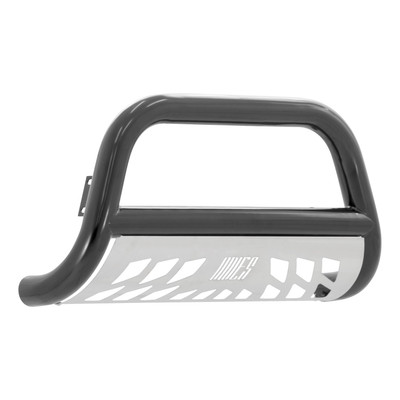 From the cattle rancher on the open range to the industrial man of the asphalt jungle to the jerky-jawing trail hog of the north woods, the ARIES 3 bull bar is made for those who face the uncertain road without fear. This particular model is constructed from strong carbon steel and finished in a durable E-coat and semi-gloss black powder coat finish to outlast rust and the elements. Other available finishes include high-gloss black stainless steel, polished stainless steel and textured black steel. Customizing the look of your vehicle is simple with the ARIES 3 bull bar. It is equipped with pre-drilled light mounting holes and a removable skid plate. The center crossbar features two pre-drilled holes that readily accept an LED light bar or two LED work lights. The skid plate is made from 304 stainless steel and has a brushed finish to stop rust and hide scratches and scuffs. It also features an aggressive, ARIES-exclusive cutout pattern and can be removed for a customized look. Each ARIES 3 bull bar is made a vehicle-specific design, meaning that for each make and model, the bull bar has a custom bend and unique mounting brackets. This allows for the best possible fit on your vehicle and ensures solid attachment. The brackets also use pre-existing factory holes in the vehicles frame to eliminate drilling, speed up installation and increase rigidity. For a different breed of bull bar, ARIES has what youre looking for.