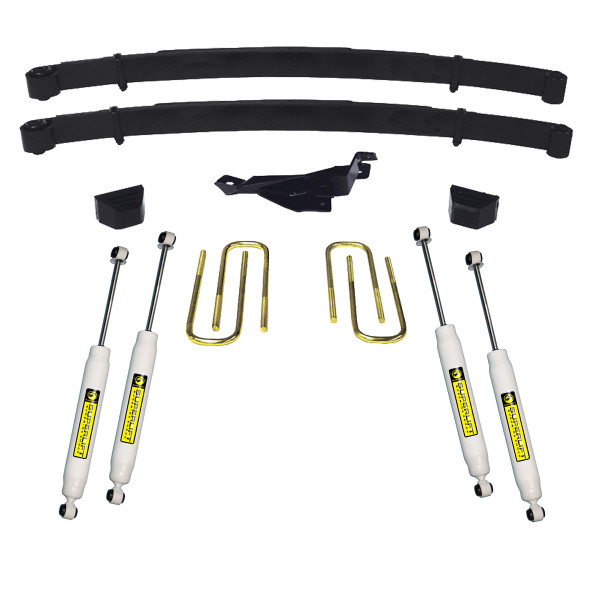 - Incl. Front Leaf Springs; Track Bar Bracket; Shocks