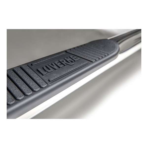 LUVERNE 3" round nerf bars provide a rust-free accent and a reliable step up into your truck or SUV. They feature a made-in-USA, vehicle-specific design to contour to each unique make and model, and they are constructed from durable stainless steel to be impervious to rust. With non-skid step pads and heavy-duty, mandrel-bent tubing, these 3" nerf bars offer safe vehicle entry and exit, and they are available in two finish options for the look that best complements your vehicle. One of the greatest threats to nerf bars, running boards and side steps is rust. Whether you're braving the uncertainty of the off-road trail or just commuting back and forth to work every day, rain, road salt and dirt can quickly cover your nerf bars in a layer of unsightly rust. That is why both finish options of our 3" round nerf bars begin with heavy-duty stainless steel tubing. Stainless steel makes these nerf bars strong and rust-free, ensuring a reliable step and a stylish accent for your vehicle, mile after mile. We then finish our 3" nerf bars in your choice of high-polish stainless steel for a bright, clean look or a durable, textured black powder coat for ultimate corrosion resistance. While rust protection is a vital attribute of any side accessory, a custom fit is also important. We manufacture our 3" nerf bars right here in the USA from mandrel-bent tubing to give them a smooth, sleek appearance. Each one is designed vehicle-specific to contour to the unique shape of each make and model. The tough, factory-installed step pads are also custom-placed to match the layout of your vehicle, featuring a rugged, non-skid surface to provide a comfortable step and safe entry and exit every time. LUVERNE 3" round nerf bars install using high-strength vehicle-specific mounting brackets for a perfect fit. The brackets allow for complete elimination of drilling during the install, and they feature a durable black powder coat finish for lasting protection against corrosion.