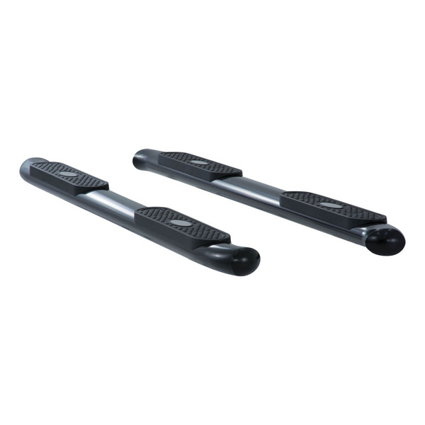 When you start and end your day turning the ignition of your truck, unreliable footing just is not an option. You need a step that can bear weight with ease, provide comfortable footing and look good doing it. ARIES 4 oval side bars are sleek, strong and custom-fitted to be a highly functional extension of your truck. ARIES 4 oval side bars are made with strong 4 elliptical tubing and are available in two different finish options to allow you full customization: polished stainless steel and black powder coat carbon steel. This set of side bars is constructed from high-strength carbon steel for a solid step, and they feature a dual-layer E-coat and semi-gloss black powder coat finish for excellent protection against scratching, chipping and peeling. Something that sets the ARIES 4 oval side bar apart from all others is its blended end caps and OE-style bends. Rather than capping our side bars with a plastic cap, we offer a blended end cap for a smooth, finished appearance. We also equip the ends with a special 20-degree bend and original equipment styling to perfectly contour to your vehicle. ARIES 4 oval side bars are fitted with raised step pads to provide a wide stepping surface. The polypropylene construction will not crack over time, and because it has a textured grip, the surface is highly resistant to slips and skids, even when wet. To add an extra element of class to our oval sides, we also fit each one with a stainless steel insignia bearing the ARIES name. Installation of ARIES 4 oval side bars is quick and easy with custom-fitted mounting brackets and no drilling necessary. These nerf bars fit select model years of the Chevrolet Traverse and GMC Acadia (see application info to verify fitment).
