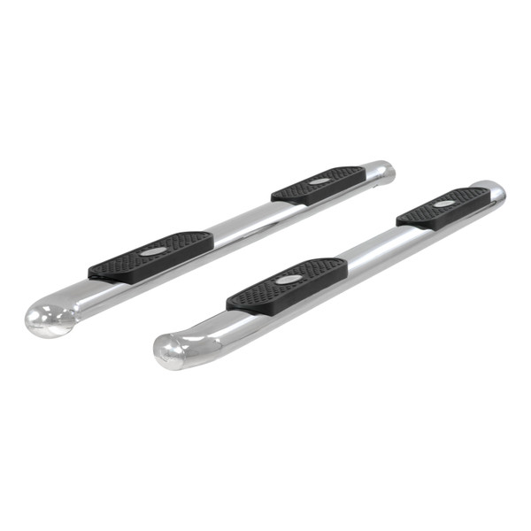 When you start and end your day turning the ignition of your truck, unreliable footing just is not an option. You need a step that can bear weight with ease, provide comfortable footing and look good doing it. ARIES 4 oval side bars are sleek, strong and custom-fitted to be a highly functional extension of your truck. ARIES 4 oval side bars are made with strong 4 elliptical tubing and are available in two different finish options to allow you full customization: polished stainless steel and black powder coat carbon steel. This set of side bars is constructed from 304 stainless steel, meaning high nickel content to be truly stainless. They easily resist rust and corrosion and feature a highly polished finish that is made to last. Something that sets the ARIES 4 oval side bar apart from all others is its blended end caps and OE-style bends. Rather than capping our side bars with a plastic cap, we offer a blended end cap for a smooth, finished appearance. We also equip the ends with a special 20-degree bend and original equipment styling to perfectly contour to your vehicle. ARIES 4 oval side bars are fitted with raised step pads to provide a wide stepping surface. The polypropylene construction will not crack over time, and because it has a textured grip, the surface is highly resistant to slips and skids, even when wet. To add an extra element of class to our oval sides, we also fit each one with a stainless steel insignia bearing the ARIES name. Installation of ARIES 4 oval side bars is quick and easy with custom-fitted mounting brackets and no drilling necessary. These nerf bars fit select model years of the Toyota Tundra (see application info to verify fitment).