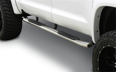 OE style with 15 degree bends on the ends for a sleek look. Slip resistant step pads provide a large and safe step surface. Bolt-on installation with vehicle-specific mounting brackets that are included. Textured black powder coat finish with composite end caps offer a 5 year warranty