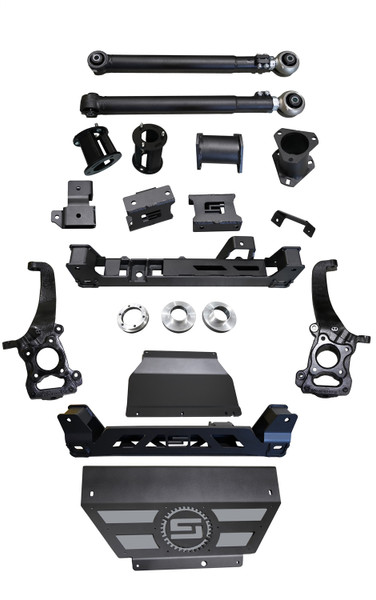 Create A New AccountSuperlift's 5 Inch Lift kit for the 2021-2023 Ford Bronco is intentionally over-built to be the best. Our uniquely engineered design adds strength and durability and has bonus features that others kits do not offer. This kit features CNC machined steering knuckles, HD ¼" plate crossmembers, and a front skid plate with the Superlift "S" logo laser cut into the material for a modern look. ?Another unique feature are the adjustable rear lower control arms. These control arms are on-vehicle adjustable and feature our dual durometer REFLEX bushing for quiet and maintenance free operation. Diff drops, strut spacers, sway bar correction, track bar bracket, and all other required parts are included to make sure your Bronco handles and performs just like a stock.