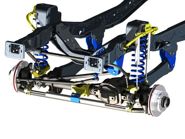 This suspension features luxury ride coil springs matching OE coils rates that are specifically designed for gas or diesel motors. A heavy duty track bar relocation bracket properly centers the axle...