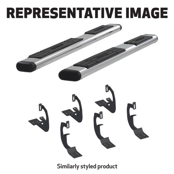 For solid footing, a comfortable step and a bold look for your truck, ARIES 6 oval side bars are a step up. They are designed to mimic the style popular original equipment side bars and running boards, featuring two professional finish options, large non-skid step pads and tapered end caps. This particular pair of 6 ovals is made with 304 stainless steel, meaning they are high in nickel content to be truly resistant to rust and corrosion. For a lasting shine and a bright accent on your vehicle, they are given a highly polished, mirror-like finish. They are also available in semi-gloss black powder-coated aluminum. To protect the interior of the tubes, all 6 oval sides are equipped with hard ABS plastic end caps. The end caps come pre-attached to the tubes and feature a tapered design, lending to the overall OE look of the side bars and providing a professional finishing touch on your truck or SUV. For a sure step every time you climb into your vehicle, ARIES 6 ovals are equipped with extra-wide step pads. The step pads are made from tough polypropylene and provide a generous 5 width. The large, flat surface offers comfortable footing and has a textured surface to prevent slipping, even when wet. The polypropylene construction makes the step pads durable and crack-resistant for long-lasting use. ARIES 6 oval side bars are also made for easy, no-drill installation. The boards themselves feature a track system for versatile application, and they mount using vehicle-specific brackets for a custom fit. The mounting brackets are made from high-strength carbon steel and use pre-existing holes to eliminate drilling during the installation process (NOTE: This set of side bars includes vehicle-specific mounting brackets. See the application information to verify compatibility with your vehicle).