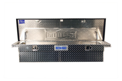 The toolbox is coated with a textured black powdercoat finish to resist scratches and rust. It is securely mounted to the truck bed by our experienced technicians. The locking paddle handles keep your tools secured while driving.