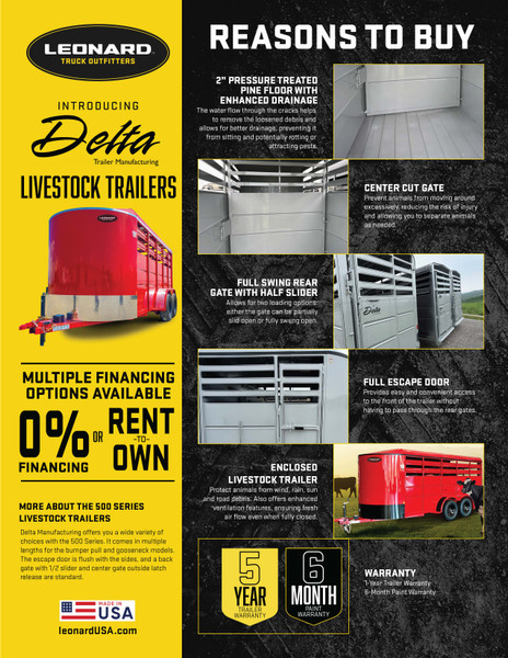 The spring-loaded slam latch center gate keeps your load securely divided, while the escape door ensures safety and convenience when managing livestock. A pressure-treated pine floor, steel teardrop fenders, and a deluxe aluminum gravel guard make this trailer rugged enough for any terrain.