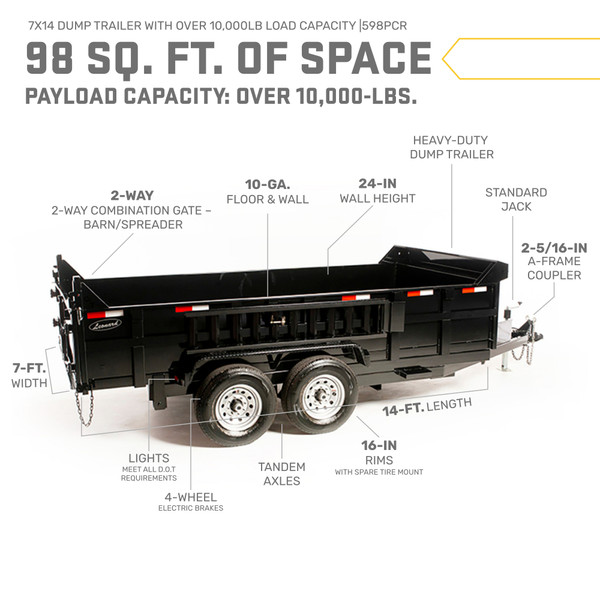 7x14 High-Side Dump Trailer – 14K GVWR, 9,653 lb Payload, Dual Hydraulic Cylinders | 598PCRH