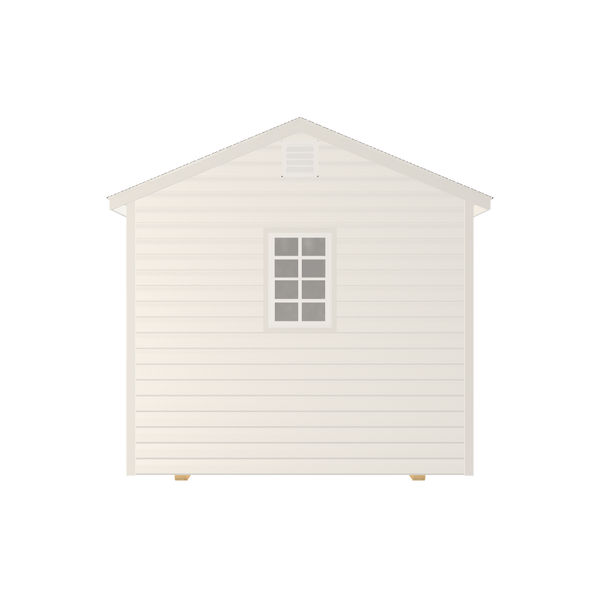 Discover the affordable beauty of a 610 8x12 Gable Hampton storage shed with shingle roof. This low maintenance, popular seller is built like a house with 2-inch x4-inch stud walls that are 16 inches on center with OSB and covered in high-quality vinyl siding. The roof material is 25-year architectural shingles, which is comparable to what we see in most residential roofing systems. Our Hampton 8x12 shed features a double six-panel fiberglass door that becomes a spacious 60-inch entryway when both are opened and a large 18-inch x 27-inch window on the opposite end.