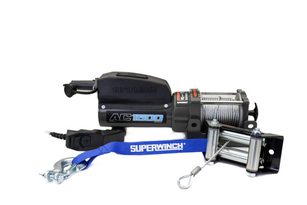 Need to Winch, but don't have a battery? When AC power is the only option for your shop or garage, the SuperWinch AC 1500 Utility Winch is the solution! The AC 1500 comes with a strong 1.1 HP 120V AC permanent-magnet motor that provides both superior pulling power and dynamic braking, ensuring safe, reliable operation. The AC 1500 utility Winch features a free-spool 'pull and turn' clutch handle, 12' hand-held remote, and 35' of .150 in. diameter wire rope. The AC 1500 is rated for 1,500 lbs. of reliable pulling power, and is IP66 rated for protection from water and dust. The AC 1500 comes with a limited 2 year warranty and is available in a durable gray powder coat finish.