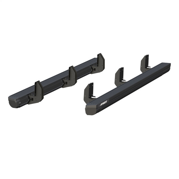 ARIES ActionTrac powered running boards are unique from other power side steps because they are actually two steps in one. This patented step-within-a-step design -- combined with a no-drill bracket installation, control module operation and powder-coated aluminum construction -- truly makes these retractable running boards an asset for the offroad truck or Jeep, particularly as lifted truck steps. ActionTrac powered running boards have one 4 in. wide step on top of the main housing and one 3 in. wide that automatically deploys as needed. When the door opens, the control module deploys the power step 8 in. below the main step, 15 in. below the doorsill, depending on the model. This two-step design offers enhanced safety and easier vehicle entry and exit, especially on large, lifted vehicles. Its also very helpful for families with young children and for elderly passengers. The boards contour to the vehicle and offer extra protection for the rocker panels from small road debris. For additional safety, the module is able to detect any obstructions during operation to avoid p in. hazards. LED lights are also built into the housing to illuminate the steps when deployed. ARIES ActionTrac powered running boards are made for vehicle-specific installation for a custom fit. They use pre-existing factory holes for the brackets to eliminate drilling. They also do not require any splicing into factory wiring. These particular running boards fit specific years of the Ford F250 Super Duty, F350 Super Duty and F450 Super Duty (see application info to verify fitment). Each set is constructed from powder-coated aluminum to be strong, lightweight and non-corrosive. The quiet, maintenance-free rotary motor is shielded within the main housing, along with the power step pivot points and all electrical components, protecting them from the harsh elements. NOTE: Boards, brackets and wiring are included.
