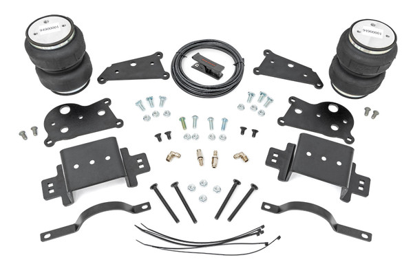 Create A New AccountIdeal Leveling. Is your truck your workhorse? The main attraction to the pick-up line is the accessibility to haul and tow as desired. However, due to the amount of weight in the bed, or the condition of the vehicle's rear leaf springs, this can cause the vehicle to be un-level when under load. Here at Rough Country, we created an innovative new product to ensure that these are troubles of the past. Introducing, Rough Country's Rear Air Spring Kit. Heavy-duty Construction. Rough Country's Rear Air Spring Kit features two RC branded high-quality double convoluted airbags complemented with DOT-approved airlines. Whether you plan on towing or hauling in the not-so-distant future Rough Country's Air Spring kit is the must-have accessory to ensure that your trailer is level reducing the weight off of the tongue of your trailer. Each kit offers 1/4" push connector fittings and all of the bracketry needed to ensure installation is lightning fast and secure! Rough Country's Air Spring kit provides up to 5,000 lbs. of load support to ensure that you experience less sway and bottoming out when braking and steering! Installation. With an estimated timeframe of 1-2 hours this full kit can be installed at home using standard tools and can be completed efficiently and quickly! Limited Lifetime Replacement Warranty. Rough Country's Rear Air Spring Kit is backed with a limited-lifetime replacement warranty towards manufacturer defects. As such, the product is protected from structural and workmanship damage after the date of purchase. With our industry-leading warranty give yourself peace of mind when using Rough Country's Suspension products!