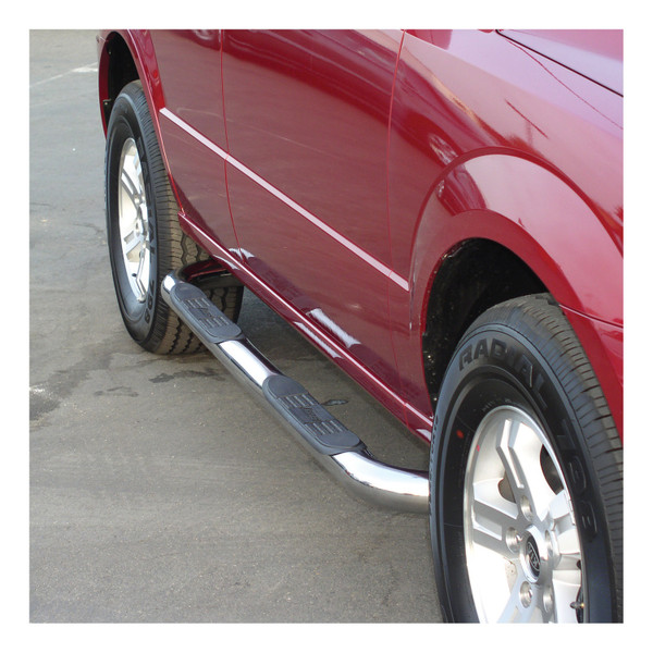 ARIES 3 side bars are more than a fancy decal for your truck, Jeep or SUV. They are a confident first step on each new adventure. They are made from steel and come in 304 polished stainless steel or semi-gloss black powder-coated carbon steel. Our 304 stainless steel is a true stainless with high nickel content, offering better corrosion resistance and a long-lasting finish. To give our carbon steel side bars an added edge, each unit goes through an E-coat process, before receiving its black powder coat, to strengthen and protect the final finish against peeling, chipping and scratching. ARIES 3 round side bars come with carbon steel brackets and non-skid step pads. The mounting brackets are strong and custom-designed for specific makes and models to allow the side bars to contour to the lines of your vehicle. They offer easy installation and the strength necessary to provide sound footing. The ARIES 3 round side bar also comes with non-skid step pads made of polypropylene. These wide step pads feature a textured pattern and cover a wide portion of the tube to be more comfortable and safer. ARIES 3 round side bars are proven to fit and warranted against defects to give you confidence for whatever lies ahead. We cover our 3 side bars with a three-year warranty for the black carbon finish and a limited lifetime warranty for the stainless steel.