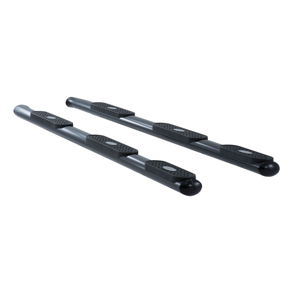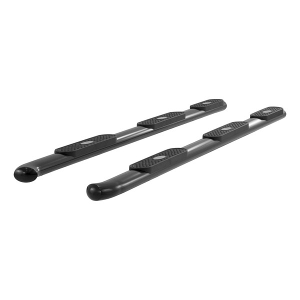 When you start and end your day turning the ignition of your truck, unreliable footing just is not an option. You need a step that can bear weight with ease, provide comfortable footing and look good doing it. 4 in. oval side bars are sleek, strong and custom-fitted to be a highly functional extension of your truck. For a variety of makes and models, 4 in. oval sides are a step up. 4 in. oval side bars are made with strong 4 in. elliptical tubing and are available in semi-gloss black powder coat carbon steel. These 4 in. oval sides are a special wheel-to-wheel side bar option, constructed from high-strength carbon steel and protected with a semi-gloss black powder coat finish. They are fitted with an extra step pad and are made to span the length of your trucks wheelbase for utility purposes and an enhanced appearance. The extended step of our wheel-to-wheel side bars allows for a sturdy foothold and easy access to the truck bed. Something that sets the 4 in. oval side bar apart from all others is its blended end caps and OE-style bends. Rather than capping our side bars with a plastic cap, we offer a blended end cap for a smooth, finished appearance. 4 in. oval side bars are also fitted with raised step pads to provide a wide stepping surface. The polypropylene construction will not crack over time, and because it has a textured grip, the surface is highly resistant to slips and skids, even when wet.