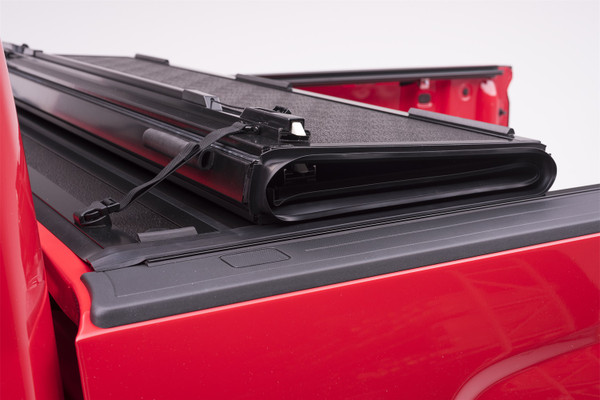 The BAKFlip F1 hard folding truck bed cover comes equipped with an FRP (Fiberglass Reinforced Polymer) top surface, providing superior dent, ding and scratch resistance. The heavy-duty aluminum panels that line the underside give the cover its strength and durability. Together, these make the F1 our top of the line BAKFlip, offering a stylish and secure cover for the long haul. The F1's rugged design is made to perform in severe working and weather conditions. Rain, hail or snow - the F1 has you covered. Quickly and easily fold and lock the cover in the flipped up position for hauling large loads. The F1's advanced infrastructure and upgraded components provide unrivaled strength and security, and are backed by an extended 3-year warranty.