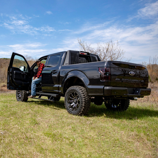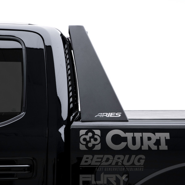 The ARIES Switchback headache rack is an aggressive, off-road-style truck headache rack that features rust-free construction, an LED-compatible top edge and a patented installation system -- all to make sure your truck not only stands out on the road, but also has the backbone to tackle the trail. The Switchback truck headache rack is built with all-aluminum construction, meaning you will never have to worry about rust. Aluminum offers solid strength while helping to keep your truck lightweight. The aluminum alloy is also protected with a highly durable carbide black powder coat finish that maximizes corrosion resistance and adds a sleek finishing touch. The Switchback is built to readily accept aftermarket lighting. Its top edge is a slotted channel that accepts LED light bars or work lights. Three 10 in. LED light bars (ARIES #1501260) are recommended. The slotted channel allows for easy installation of the lights and adjustable positioning. Installing the ARIES Switchback aluminum headache rack couldnt be easier with our patented mounting system. It features unique stake pocket anchors that requires no drilling or complicated procedures. Simply drop it in, tighten a single bolt on each side, and youre ready to hit the trails. The Switchback also features a three-piece assembly, making it easier to ship, and allowing you to mount the headache rack without the center section for easy access to the rear cab window. Each ARIES Switchback headache rack is designed for vehicle-specific installation for a custom fit. This particular model fit specific years of the Ford F150 (see application info to verify fitment). Brackets and mounting hardware are included.
