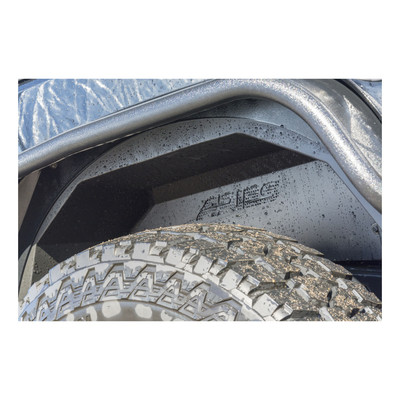 For those who eat, sleep and breathe off-roading, ARIES fender flares show off your off-road tires better than factory flares, and they feature strong, lightweight aluminum construction to easily stand up to the elements. These front inner fender liners are designed to mount with ARIES Jeep JL fender flares and provide ultimate protection for your engine compartment against mud, water and road debris. ARIES Jeep inner fender liners are constructed from welded aluminum to not only be lightweight and rust-free, but also to offer better strength than the plastic factory fender liners. They are also covered in a highly durable carbide black powder coat finish for maximum corrosion protection. ARIES front fender liners install securely in conjunction with ARIES fender flares and include all necessary hardware for a complete installation (some drilling and rivet nut installation required). Jeep fender liners are also available for the rear or in a complete kit for the front and rear.