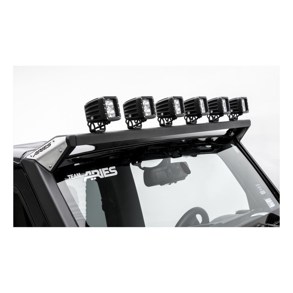 ARIES Jeep roof light mounting brackets allow you to mount an LED light bar up to 50 in. long above your windshield, lighting the way on the trail and making your Jeep Wrangler stand out from the pack. These LED light bar mounting brackets feature stainless steel construction with a durable powder coat finish to provide maximum rust resistance and easily outlast the elements. They also feature removable stainless steel cover plates that allow for easier access to the light bar mounting hardware during installation. With the cover plates bolted into place, the light bar hardware is protected and hidden from view for added security and a more integrated look. ARIES Jeep light brackets are fast and easy to install, using factory mounting points on the Jeep JK to eliminate the need for drilling. Once installed, the roof light brackets and slotted center crossbar can accept multiple smaller light bars or work lights up to 50 in. in total length. The center crossbar can also be removed to mount a full 50 in. light bar (ARIES 50 in. double-row LED light bar #1501278 recommended).
