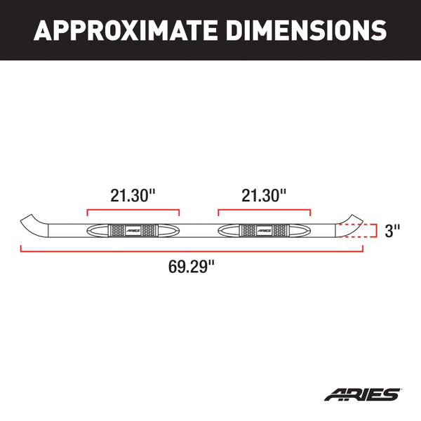 ARIES 3 in. side bars are more than a fancy decal for your truck, Jeep or SUV. They are a confident first step on each new adventure. These 3 in. nerf bars are constructed from strong carbon steel for superior rigidity, and they feature a sleek semi-gloss black powder coat finish. For an added edge, each nerf bar also goes through an E-coat process, before receiving its black powder coat, to strengthen and protect the final finish against peeling, chipping and scratching. ARIES 3 in. round side bars are also available in polished stainless steel or semi-gloss black powder-coated steel. All ARIES 3 in. nerf bars come with heavy-duty steel brackets and non-skid step pads. The mounting brackets are strong and custom-designed for specific makes and models to allow the side bars to contour to the lines of your vehicle. They offer easy installation and the strength necessary to provide sound footing. These particular custom nerf bars fit specific years of the Toyota 4Runner (see application info to verify fitment). ARIES 3 in. round side bars also come with non-skid step pads made of tough polypropylene. These step pads feature a textured pattern for enhanced safety, and they cover a wide portion of the tubes for a more comfortable step.