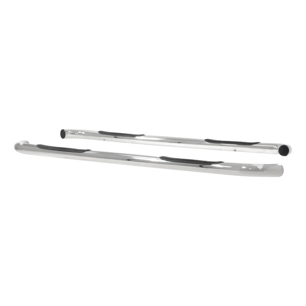 ARIES 3 in. side bars add a custom look and dependable footing to your truck, Jeep or SUV. They feature a classic style, a strong design and non-skid step pads. ARIES nerf bars are all made vehicle-specific for a custom, no-drill fit, and they are available in multiple finish options. This set of nerf bars is constructed from 304 stainless steel with a polished finish. Our 304 stainless steel is a true stainless with high nickel content, offering better corrosion resistance and a long-lasting finish. The polish is a triple application, resulting in a mirror-like shine to complement your vehicle. ARIES 3 in. round side bars also come with high-strength steel brackets and non-skid step pads. The mounting brackets -- as well as the side bars and step pads -- are custom-designed for specific makes and models to allow the nerf bars to contour to the lines of your vehicle. This ensures easy, no-drill installation and the strength necessary to provide solid footing. This particular set of custom nerf bars fits specific years of the Ford F150 (see application info to verify fitment). ARIES 3 in. round side bars also come with non-skid step pads made of polypropylene. These wide, custom-positioned step pads feature a textured pattern and cover a wide portion of the tubes to be more comfortable and high-traction, even in wet conditions.