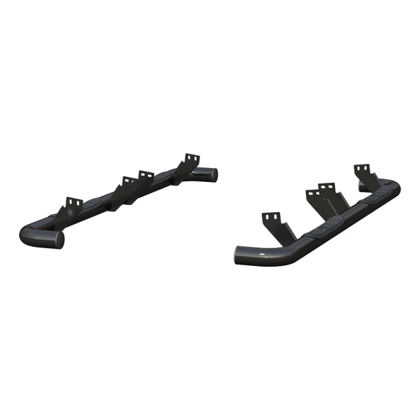 ARIES 3 in. side bars are more than a fancy decal for your truck, Jeep or SUV. They are a confident first step on each new adventure. These 3 in. nerf bars are constructed from strong carbon steel for superior rigidity, and they feature a sleek semi-gloss black powder coat finish. For an added edge, each nerf bar also goes through an E-coat process, before receiving its black powder coat, to strengthen and protect the final finish against peeling, chipping and scratching. ARIES 3 in. round side bars are also available in polished stainless steel or semi-gloss black powder-coated steel. All ARIES 3 in. nerf bars come with heavy-duty steel brackets and non-skid step pads. The mounting brackets are strong and custom-designed for specific makes and models to allow the side bars to contour to the lines of your vehicle. They offer easy installation and the strength necessary to provide sound footing. These particular custom nerf bars fit specific years of the Hummer H2 (see application info to verify fitment). ARIES 3 in. round side bars also come with non-skid step pads made of tough polypropylene. These step pads feature a textured pattern for enhanced safety, and they cover a wide portion of the tubes for a more comfortable step.