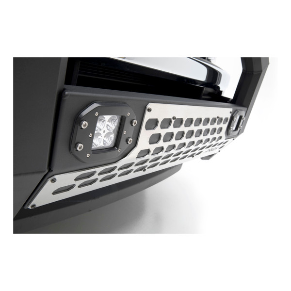 The AdvantEDGE bull bar boasts an all-aluminum construction and an aggressive look to complement the style of todays trucks. It is made with eight-sided, extruded aluminum tubing to be strong, lightweight and rust-free, and it features a tough powder coat finish in your choice of carbide black or chrome for maximum corrosion resistance. This raw aluminum cover plate is designed to replace the powder-coated AdvantEDGE bull bar cover plate and allow for ultimate customization. It can be painted any color to complement the look of your vehicle, and it comes with mounting hardware for easy installation. This cover plate is intended to fit AdvantEDGE bull bars with integrated, flush-mount LEDs.