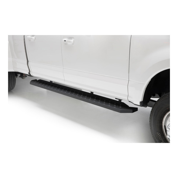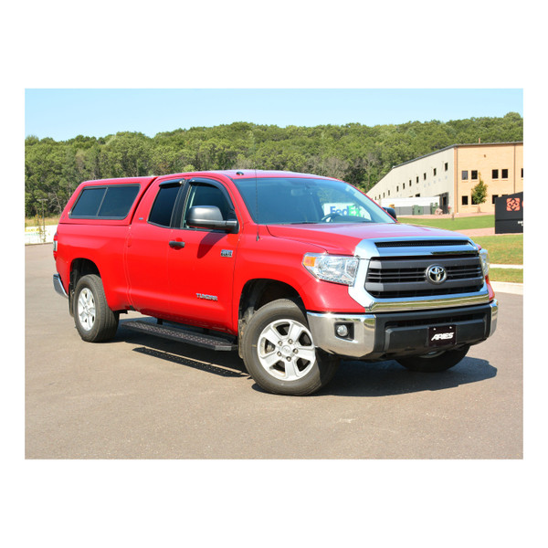 Powerful, definitive and uncompromising as a mountain ridge, ARIES RidgeStep running boards are made for those who gets it done, day after day. With their solid, all-steel construction, non-skid treads and tough powder coat finish, RidgeStep running boards are made to finish the job. Installation of these running boards is easy and secure because they use the ARIES VersaTrac mounting system. The underside of each board is equipped with a channel that accepts a set of heavy-duty bracket inserts. The inserts move along the channel to fit your truck, and the mounting hardware provides a secure attachment. These running boards are designed to fit specific years of the Toyota Tundra (NOTE: This set of running boards includes vehicle-specific VersaTrac mounting brackets. See the application information to verify compatibility with your vehicle). ARIES RidgeStep running boards are not only made for easier installation, but they are also built to face the harsh elements of the commercial job. They feature high-strength, solid steel construction for a step that can keep up with those steel-toe boots, and they are completely without plastic parts, meaning they will not crack or fade over time. Their stamped, all-steel tread offers a 6-1/2 in. wide, non-skid surface that will never wear down no matter how many times you climb in and out of your truck. The end caps are also made from steel and are welded to contour to the body of your truck for a professional finish. RidgeStep running boards come with a unique E-coat and textured black powder coat finish to not only withstand rust but also to hide minor scratches and grime.