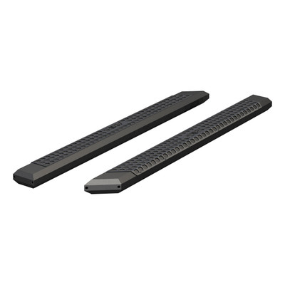 ARIES AdvantEDGE side bars do away with the common, rounded look of other side bars and nerf bars, featuring an angular, eight-sided tube profile and powder-coated all-aluminum construction. The angular edges provide a clear-cut, uncompromising accent for the look of todays trucks. Made from 5-1/2 in. wide, eight-sided, extruded aluminum tubing, AdvantEDGE side bars are strong, lightweight and impervious to rust, offering a solid step that is built to face the elements and outlast them. They also come with die-cast aluminum end caps and a stamped aluminum tread. The aluminum treads provide a long-lasting, non-skid stepping surface that will not crack or fade in the sun. ARIES AdvantEDGE side bars are also marked for their easy, custom-fit installation. They feature the ARIES VersaTrac mounting system with brackets that are made from powder-coated steel and built for specific vehicles (NOTE: VersaTrac mounting brackets are sold separately; see application information to determine which brackets and side bars fit your vehicle). The high-strength steel brackets mount using pre-existing holes, and the side bars attach to the brackets with heavy-duty hardware and a full-length channel. The VersaTrac mounting system makes installation simple and customizable, allowing the side bars to be swapped out at any time with other side steps or running boards that feature the VersaTrac system. Setting yourself apart is simple with the ARIES AdvantEDGE series. In addition to our AdvantEDGE side bars, we also offer the AdvantEDGE bull bar and AdvantEDGE headache rack, featuring the same all-aluminum construction and eight-sided tube profile. For a fully customized look to match your pickup, AdvantEDGE side bars are available in two finish options, including carbide black powder coat or chrome powder coat.