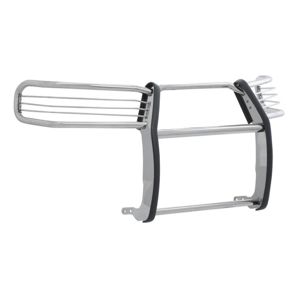 For the conqueror in every truck, Jeep or SUV owner, the ARIES grille guard offers the tough, trail-ready look you demand. It begins with a one-piece frame of 1/4 in. thick welded plates and 1-1/2 in. mandrel-bent tubing for a solid build. Each one is made with a vehicle-specific design for a better fit, easier install and more secure mounting. The side brush guards are custom-bent to contour to the profile of your vehicle, while the mounting brackets are positioned for a no-drill application. This means pre-existing factory holes are used to ensure optimum fitment and less vibration. This particular custom grille guard fits specific years of the Toyota 4Runner (see application info to verify). The ARIES grille guard also makes it easy to customize the look of your vehicle. Not only does the crossbar have two pre-drilled holes for mounting aftermarket LED lights, but many of our grille guards are also available in two finish options -- polished stainless steel or semi-gloss black steel. The stainless steel grille guard is made with 304 stainless, being high in nickel content and truly resistant to rust and corrosion. This option comes with a mirror-like polished finish for a definitive shine. The semi-gloss black grille guard is made with high-strength carbon steel for added strength. It features a tough black powder coat finish to protect against rust, scratches and the elements. All ARIES grille guards also come with rubber stripping along the risers to protect the frame against scuffs and scratches.