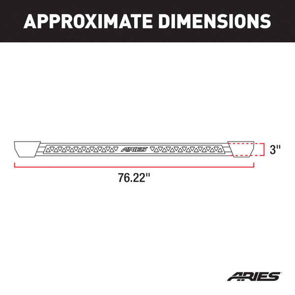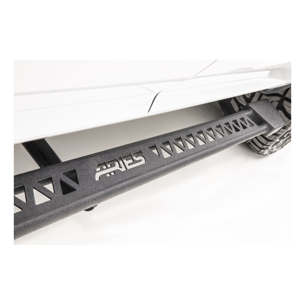 Sometimes side bars, nerf bars and running boards just arent the right fit for the off-roader. When your vehicle is beefed up and built out the way it was born to be, you need a step up from ordinary. ARIES Rocker Steps are the ideal side accessory for the off-road-style truck, Jeep or SUV, featuring extra protection for your rocker panels, a convenient 3 in. wide step up and enough ground clearance to allow you to hold nothing back. While many rocker panel protectors are simple steel panels or tubes, the ARIES Rocker Step is something more. In addition to its all-steel construction, it has a wide, flat profile that provides two key advantages. First, it offers a convenient, comfortable step up into your vehicle The double-tube layout and welded top plate create a sturdy, 3 in. wide stepping surface. Second, the flat design offers added ground clearance. Unlike some side bars that are mounted down and away from the vehicle, ARIES Rocker Steps are set high enough to clear brush, boulders and other off-road debris. They also feature a durable E-coat and textured black powder coat finish to resist rust and hide scratches and grime. Mounting ARIES Rocker Steps is fast and easy. They come with vehicle-specific mounting brackets, pre-welded into place, to provide reliable footing and a custom fit on your vehicle. This particular set of Rocker Steps fits specific years of the Ram 1500 and Dodge Ram 1500 (see application info to verify fitment). The brackets install using pre-existing mounting locations to eliminate the need for drilling and cut down on installation time. ARIES Rocker Steps are sold in pairs for the driver and passenger side and come with all necessary mounting hardware.