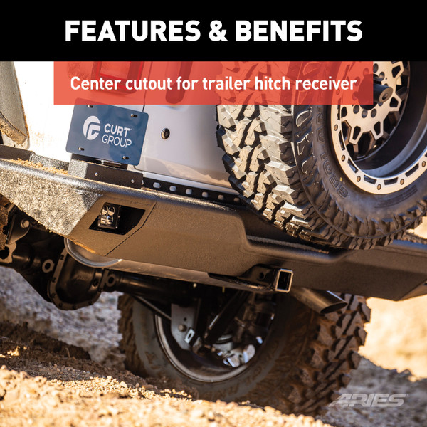 The ARIES TrailChaser Jeep bumper is unlike any other bumper for the Jeep Wrangler JL because it features a modular design. Each piece can be attached or swapped out as desired, giving you complete freedom of customization. This particular piece includes the rear center section only and is intended to accept corners (sold separately). It is constructed from T6 aluminum alloy to be strong, lightweight and rust-free, and has a unique, textured black powder coat finish for maximum corrosion resistance. It is also available in powder-coated steel.
