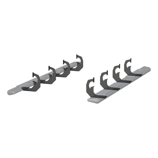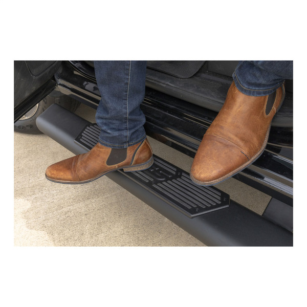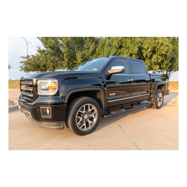 ARIES AscentSteps are truly modern running boards for todays trucks and SUVs. They feature an elegant teardrop profile, highly unique dual-constructed step pads, a rigid and rust-resistant build and a no-drill installation. AscentStep running boards are set apart from other, common oval side steps with their stylish, distinctive teardrop shape. The boards are rounded on the ends with seamlessly blended end caps, giving them subtle, superior style to complement your truck. The step pads of these running boards are also unique, featuring a two-part construction. They are comprised of a polyethylene tread base and a metal plate overlay. The poly treads protrude through the overlay, providing an aggressive accent and non-skid traction for a safe stepping surface. The stainless steel plates also help protect the running boards from scuffs, scratches and rust caused by frequent foot traffic. AscentStep running boards offer excellent rigidity with their high-strength steel construction. The steel is covered with a durable carbide black powder coat finish for dependable corrosion, scratch and UV resistance and for a clean, sleek look on your truck or SUV. Every set of ARIES AscentStep running boards is made for vehicle-specific application. This ensures optimal integration with the truck without any drilling or difficult modifications required. This particular set of custom running boards fits certain years of the Chevrolet Silverado 1500, 2500 HD, 3500 HD or Suburban and GMC Sierra 1500, 2500 HD, 3500 HD or Yukon XL (see application info to verify fitment). Additionally, AscentSteps are equipped with the VersaTrac system, meaning once the brackets are installed, they can accept other running boards or side steps with the VersaTrac system. This makes installation and customization easy.