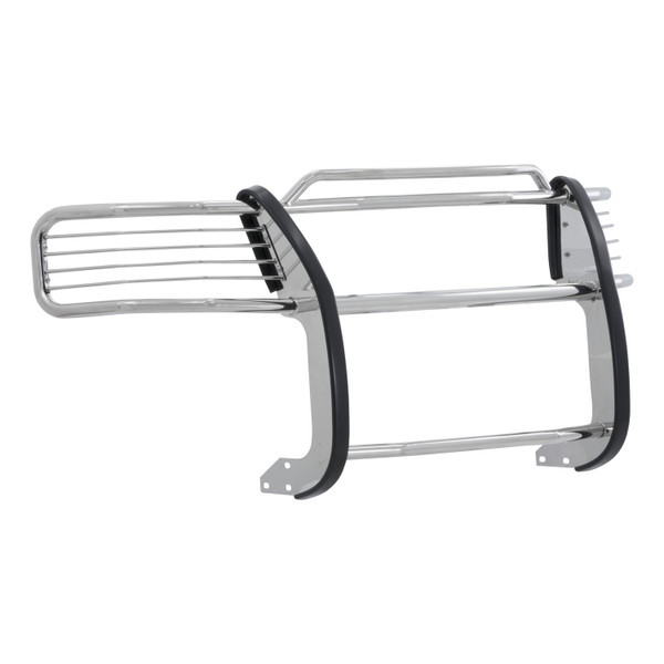 For the conqueror in every truck, Jeep or SUV owner, the ARIES grille guard offers the tough, trail-ready look you demand. It begins with a one-piece frame of 1/4 in. thick welded plates and 1-1/2 in. mandrel-bent tubing for a solid build. Each one is made with a vehicle-specific design for a better fit, easier install and more secure mounting. The side brush guards are custom-bent to contour to the profile of your vehicle, while the mounting brackets are positioned for a no-drill application. This means pre-existing factory holes are used to ensure optimum fitment and less vibration. This particular custom grille guard fits specific years of the Ford Expedition and F150 (see application info to verify). The ARIES grille guard also makes it easy to customize the look of your vehicle. Not only does the crossbar have two pre-drilled holes for mounting aftermarket LED lights, but many of our grille guards are also available in two finish options -- polished stainless steel or semi-gloss black steel. The stainless steel grille guard is made with 304 stainless, being high in nickel content and truly resistant to rust and corrosion. This option comes with a mirror-like polished finish for a definitive shine. The semi-gloss black grille guard is made with high-strength carbon steel for added strength. It features a tough black powder coat finish to protect against rust, scratches and the elements. All ARIES grille guards also come with rubber stripping along the risers to protect the frame against scuffs and scratches.