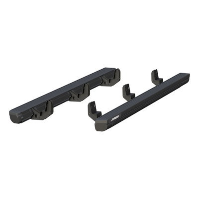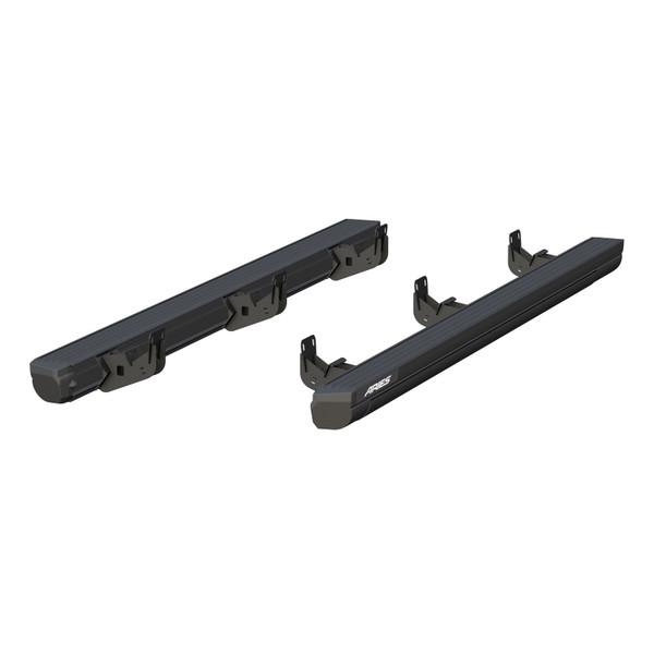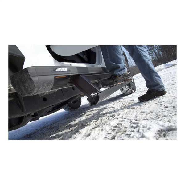 ARIES ActionTrac powered running boards are unique from other power side steps because they are actually two steps in one. This patented step-within-a-step design -- combined with a no-drill bracket installation on most models, control module operation and powder-coated aluminum construction -- truly makes these retractable running boards an asset for the offroad truck or Jeep, particularly as lifted truck steps. ActionTrac powered running boards have one 4 in. wide step on top of the main housing and one 3 in. wide that automatically deploys as needed. When the door opens, the control module deploys the power step 8 in. below the main step, 15 in. below the doorsill, depending on the model. This two-step design offers enhanced safety and easier vehicle entry and exit, especially on large, lifted vehicles. Its also very helpful for families with young children and for elderly passengers. The boards contour to the vehicle and offer extra protection for the rocker panels from small road debris. For additional safety, the module is able to detect any obstructions during operation to avoid p in. hazards. LED lights are also built into the housing to illuminate the steps when deployed. ARIES ActionTrac powered running boards are made for vehicle-specific installation for a custom fit. They use pre-existing factory holes for the brackets to eliminate drilling on most models. They also do not require any splicing into factory wiring. These particular running boards fit specific years of the Ram and Dodge Ram 1500, 2500 or 3500 (see application info to verify fitment). Each set is constructed from powder-coated aluminum to be strong, lightweight and non-corrosive. The quiet, maintenance-free rotary motor is shielded within the main housing, along with the power step pivot points and all electrical components, protecting them from the harsh elements. NOTE: Boards, brackets and wiring are included.