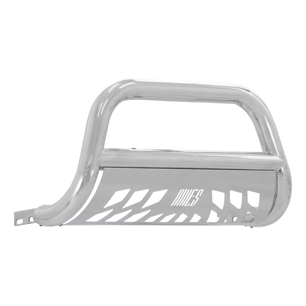 From the cattle rancher on the open range to the industrial man of the asphalt jungle to the jerky-jawing trail hog of the north woods, the ARIES 3 in. bull bar is made for those who face the uncertain road without fear. This particular model is constructed from 304 stainless steel. 304 stainless is high in nickel content, allowing the bull bar to easily resist water, road salt and rust and maintain its mirror-like polished finish in spite of the elements. Other available finishes include high-gloss black stainless steel, textured black steel and semi-gloss black steel. Customizing the look of your vehicle is simple with the ARIES 3 in. bull bar. It is equipped with pre-drilled light mounting holes and a removable skid plate. The center crossbar features two pre-drilled holes that readily accept an LED light bar or two LED work lights. The skid plate is made from 304 stainless steel and has a brushed finish to stop rust and hide scratches and scuffs. It also features an aggressive, ARIES-exclusive cutout pattern and can be removed for a customized look. Each ARIES 3 in. bull bar is made a vehicle-specific design, meaning that for each make and model, the bull bar has a custom bend and unique mounting brackets. This allows for the best possible fit on your vehicle and ensures solid attachment. The brackets also use pre-existing factory holes in the vehicles frame to eliminate drilling, speed up installation and increase rigidity. For a different breed of bull bar, ARIES has what youre looking for.