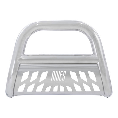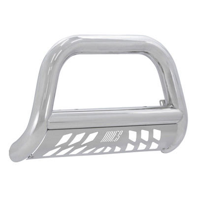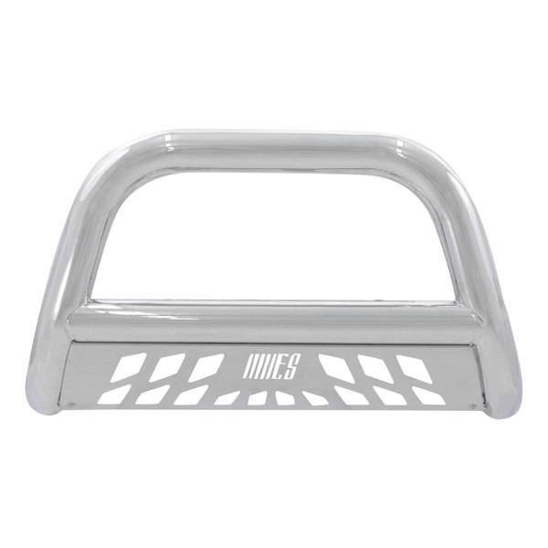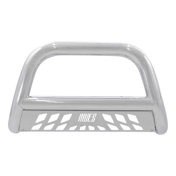 Nothing says bad to the bone like the ARIES Big Horn 4 in. bull bar. This front-end giant boasts a hefty 4 in. diameter tube to give your truck a bold look with the toughness to back it up. It is constructed from 304 stainless steel to be strong and highly rust-resistant. 304 stainless has a greater nickel content than many other types of stainless steel, allowing it to better withstand water, road salt and rust and maintain a clean surface. It also comes with a mirror-like polished finish for a bright accent on the front end of your vehicle. This bull bar is also available in a textured black powder-coated aluminum construction to give you the freedom to customize the look of your truck. Each Big Horn bull bar offers easy customization options with its pre-drilled light mounting holes. The crossbar features two mounting points to accept an LED light bar or two LED work lights. The bull bar is also equipped with a brushed stainless steel skid plate. The skid plate is made from highly rust-resistant 304 stainless steel and protects against loose gravel and other small road debris. It comes with an aggressive ARIES-exclusive cutout and can also be removed for a customized look. Made to complement our Big Step side bars, the Big Horn bull bar is perfect for lifted trucks, diesels and full-size pickups. Not only does it provide a bold, aggressive look, but it is also made to fit your vehicle perfectly. Each one features a unique bend that accents the shape and contour of a specific front-end application. Our 4 in. bull bar is also equipped with vehicle-specific mounting brackets. This allows it to be installed quicker, fit better on the vehicles frame and eliminates the need for drilling. It uses pre-existing factory holes in the frame to cut down on installation time and add rigidity.
