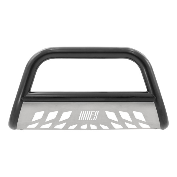 From the cattle rancher on the open range to the industrial man of the asphalt jungle to the jerky-jawing trail hog of the north woods, the ARIES 3 in. bull bar is made for those who face the uncertain road without fear. This particular model is constructed from strong carbon steel and finished in a durable E-coat and semi-gloss black powder coat finish to outlast rust and the elements. Other available finishes include high-gloss black stainless steel, polished stainless steel and textured black steel. Customizing the look of your vehicle is simple with the ARIES 3 in. bull bar. It is equipped with pre-drilled light mounting holes and a removable skid plate. The center crossbar features two pre-drilled holes that readily accept an LED light bar or two LED work lights. The skid plate is made from 304 stainless steel and has a brushed finish to stop rust and hide scratches and scuffs. It also features an aggressive, ARIES-exclusive cutout pattern and can be removed for a customized look. Each ARIES 3 in. bull bar is made a vehicle-specific design, meaning that for each make and model, the bull bar has a custom bend and unique mounting brackets. This allows for the best possible fit on your vehicle and ensures solid attachment. The brackets also use pre-existing factory holes in the vehicles frame to eliminate drilling, speed up installation and increase rigidity. For a different breed of bull bar, ARIES has what youre looking for.