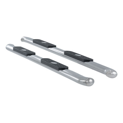 When you start and end your day turning the ignition of your truck, unreliable footing just is not an option. You need a step that can bear weight with ease, provide comfortable footing and look good doing it. ARIES 4 in. oval side bars are sleek, strong and custom-fitted to be a highly functional extension of your truck. For a variety of makes and models, 4 in. oval sides are a step up. ARIES 4 in. oval side bars are made with strong 4 in. elliptical tubing and are available in two different finish options to allow you full customization: polished stainless steel and black powder coat carbon steel. This set of side bars is constructed from 304 stainless steel, meaning high nickel content to be truly stainless. They easily resist rust and corrosion and feature a highly polished finish that is made to last. Something that sets the ARIES 4 in. oval side bar apart from all others is its blended end caps and OE-style bends. Rather than capping our side bars with a plastic cap, we offer a blended end cap for a smooth, finished appearance. We also equip the ends with a special 20-degree bend and original equipment styling to perfectly contour to your vehicle. ARIES 4 in. oval side bars are fitted with raised step pads to provide a wide stepping surface. The polypropylene construction will not crack over time, and because it has a textured grip, the surface is highly resistant to slips and skids, even when wet. To add an extra element of class to our oval sides, we also fit each one with a stainless steel insignia bearing the ARIES name. Installation of ARIES 4 in. oval side bars is quick and easy with custom-fitted mounting brackets and no drilling necessary.