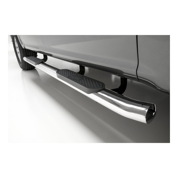 When you start and end your day turning the ignition of your truck, unreliable footing just is not an option. You need a step that can bear weight with ease, provide comfortable footing and look good doing it. ARIES 4 in. oval side bars are sleek, strong and custom-fitted to be a highly functional extension of your truck. For a variety of makes and models, 4 in. oval sides are a step up. ARIES 4 in. oval side bars are made with strong 4 in. elliptical tubing and are available in two different finish options to allow you full customization: polished stainless steel and black powder coat carbon steel. This set of side bars is constructed from 304 stainless steel, meaning high nickel content to be truly stainless. They easily resist rust and corrosion and feature a highly polished finish that is made to last. Something that sets the ARIES 4 in. oval side bar apart from all others is its blended end caps and OE-style bends. Rather than capping our side bars with a plastic cap, we offer a blended end cap for a smooth, finished appearance. We also equip the ends with a special 20-degree bend and original equipment styling to perfectly contour to your vehicle. ARIES 4 in. oval side bars are fitted with raised step pads to provide a wide stepping surface. The polypropylene construction will not crack over time, and because it has a textured grip, the surface is highly resistant to slips and skids, even when wet. To add an extra element of class to our oval sides, we also fit each one with a stainless steel insignia bearing the ARIES name. Installation of ARIES 4 in. oval side bars is quick and easy with custom-fitted mounting brackets and no drilling necessary.