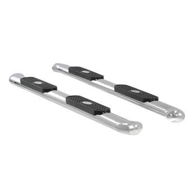 When you start and end your day turning the ignition of your truck, unreliable footing just is not an option. You need a step that can bear weight with ease, provide comfortable footing and look good doing it. ARIES 4 in. oval side bars are sleek, strong and custom-fitted to be a highly functional extension of your truck. For a variety of makes and models, 4 in. oval sides are a step up. ARIES 4 in. oval side bars are made with strong 4 in. elliptical tubing and are available in two different finish options to allow you full customization: polished stainless steel and black powder coat carbon steel. This set of side bars is constructed from 304 stainless steel, meaning high nickel content to be truly stainless. They easily resist rust and corrosion and feature a highly polished finish that is made to last. Something that sets the ARIES 4 in. oval side bar apart from all others is its blended end caps and OE-style bends. Rather than capping our side bars with a plastic cap, we offer a blended end cap for a smooth, finished appearance. We also equip the ends with a special 20-degree bend and original equipment styling to perfectly contour to your vehicle. ARIES 4 in. oval side bars are fitted with raised step pads to provide a wide stepping surface. The polypropylene construction will not crack over time, and because it has a textured grip, the surface is highly resistant to slips and skids, even when wet. To add an extra element of class to our oval sides, we also fit each one with a stainless steel insignia bearing the ARIES name. Installation of ARIES 4 in. oval side bars is quick and easy with custom-fitted mounting brackets and no drilling necessary.