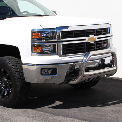 Rhino Charger Bull Bars come with a removable stainless steel skid plate designed for extra chassis protection, as well as mounting tabs for auxiliary lights. Installation is easy with no drilling required. Kit includes bull bar and mounting brackets. While supplies last.