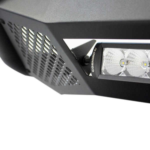 Go Rhino's RC4 LR Bull Bar is a modern, sportier take on classic truck front protection. The 2.5 diameter tubular steel frame features a steel skid plate with a stylish hexagonal cut out patter, a slot for a 20 single row LED light bar, and pre-drilled holes along the center crossmember for additional auxiliary lighting. RC4 LR Frame comes with a Limited Lifetime warranty on materials and construction and a 5 year warranty on the Textured Black Finish.