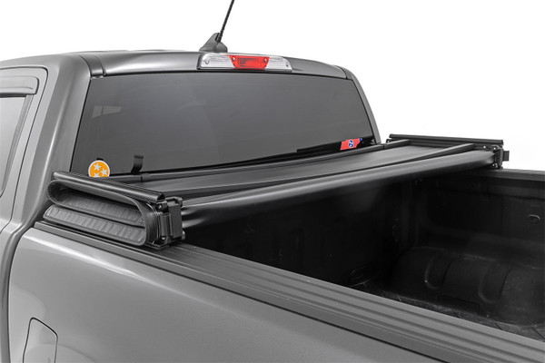 Rough Countrys Tri-Fold Vinyl Tonneau Cover gives you a practical way to protect your truck bed with a sleek look that installs in seconds.Keep your haul protected from weather and theft with our durable UV resistant, 3 ply double coated vinyl cover featuring a tailgate lock for additional security. The convenient triple-fold design allows you easy access to your bed or the ability to haul large items without entirely removing the cover. Just fold back one or two sections as needed, and attach the included durable storage straps and continue along your way.With a lightweight design and no tools required, installation is a snap. Your cover will arrive completely assembled and ready to install. Simply line up and fasten the quick-clamp locks and youre ready roll in seconds.Rough Countrys Vinyl Tri-Fold Tonneau Covers dont just look great; they help improve gas mileage by preventing wind resistance on the inside of the tailgate. Each Tri-Fold Vinyl Cover comes with a Limited Lifetime Warranty.