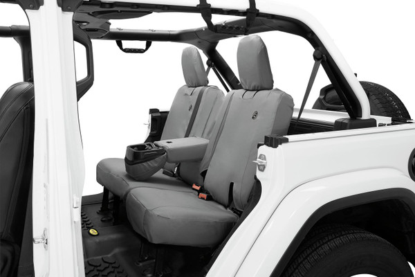 Put some great looking protection on those new Wrangler factory seats. Bestop put its best fabric experts to work on making these the best-fitting, best-looking, most durable seat covers we ve ever offered. Installation requires no drilling or cutting. This rear black seat cover fits the Jeep Wranlger JL with the folding armrest.