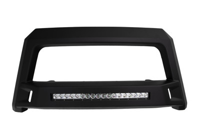 Whether the truck has aggressive lines or more refined curves, the LUND Revolution Bull Bar delivers extra front-end protection with its leading edge, chiseled three-dimensional design. LUND Revolution is constructed from heavy-gauge stamped steel with a light textured matte-black, powder coated finish. The rugged style features an integrated off-road LED light bar with a wiring kit, and installs with no drilling.