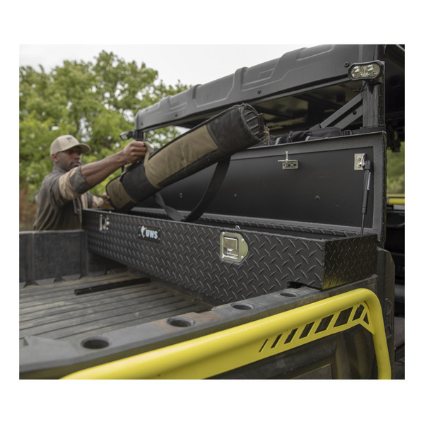 In the field or on the job, the UWS UTV tool box is a reliable companion for your side-by-side. Assembled right here in the USA, this box is designed for a custom fit, integrating with the layout of your UTV and providing functional storage and organization of your tools and other cargo. The box features extra-thick, one-piece aluminum construction, our patented RigidCore foam-filled lid and stainless steel locking handles. This particular UTV tool box fits certain years of the Polaris Ranger 1000 (mounting brackets NOT included; see application information to verify compatibility). The tub is made with 0.058" thick aluminum, welded together into a single piece for added strength. It is also shielded in a durable black powder coat finish for maximum corrosion resistance. The lid of this UTV tool box features our patented RigidCore foam-filled design. This strengthens the lid against warp