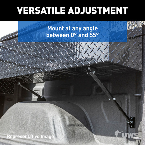 UWS truck side tool boxes provide unbeatable storage and security for your items in the bed of your truck. Each box features a corrosion-resistant aluminum construction, a highly secure stainless steel push-button locking system and a patented RigidCore foam-filled lid -- all to keep your equipment and valuables safe, well-organized and easily accessible whenever needed. Each UWS truck tool box is constructed from extra-thick aluminum for increased structural strength. The tub is welded together into a single piece for weather resistance and to easily hold heavy tools and other items. The lid features a patented RigidCore foam-filled design, sandwiched between two aluminum plates. This greatly increases the strength of the lid and helps prevent bending and warping, making operation very smooth. This particular truck tool box features a low profile for a more streamlined look and to match